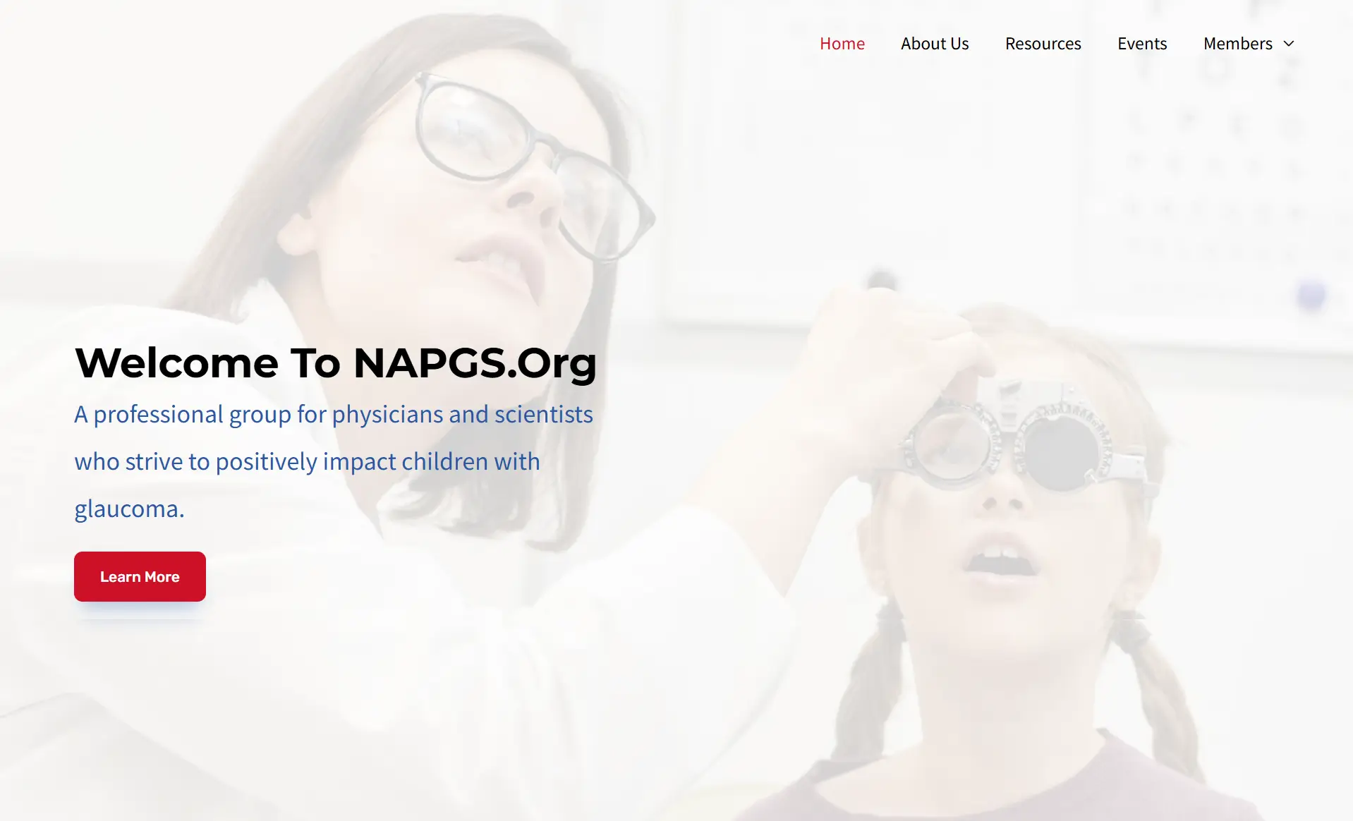 I built the NAPGS.org site to represent the North American Pediatric Glaucoma Society, a professional group focused on improving care and outcomes for children with glaucoma. The site acts as both an information hub and a resource base for clinicians, researchers, and other stakeholders in pediatric eye health.